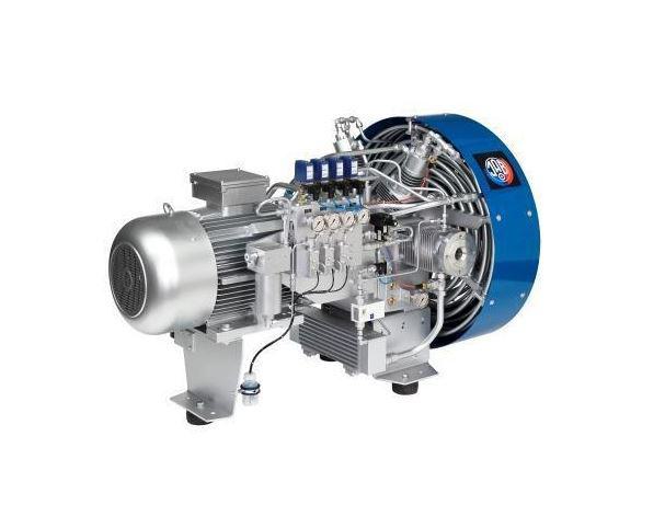 Kompressor 4-stufig, luftgekühlt Öldruckschmierung für Kurbeltrieb und Kolben der 3. und 4. Druckstufe, Hochwirksames Kühlsystem, Hoher volumetrischer Wirkungsgrad, Wartungsfreie Öl- und Wasserabscheider, Mikrofilter am HD-Gasaustritt. Hohe Qualität, robust und zuverlässig Effizient, wirtschaftlich, wartungsfreundlich.